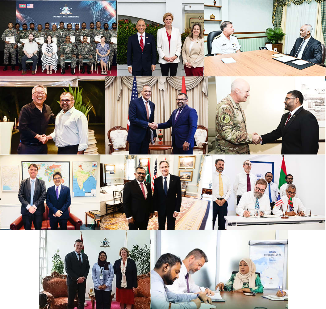 އޯގަސްޓް 5، 2024: ޑިވެލޮޕްމަންޓް އޮބްޖެކްޓިވް ގްރާންޓް އެގްރިމެންޓުގެ ދަށުން ދިވެހިރާއްޖެއަށް އަށް މިލިއަން އެމެރިކާ ޑޮލަރު ދިނުމަށް އެމެރިކާއިން އެއްބަސްވެ، އެކަމުގެ ލިޔުންތަކުގައި ސޮއި ކުރި އެވެ.